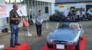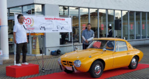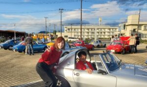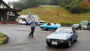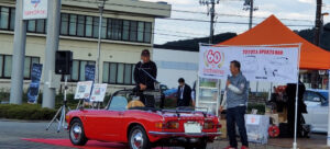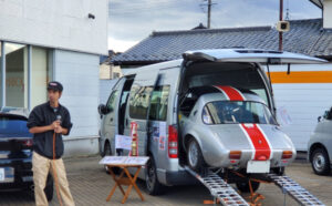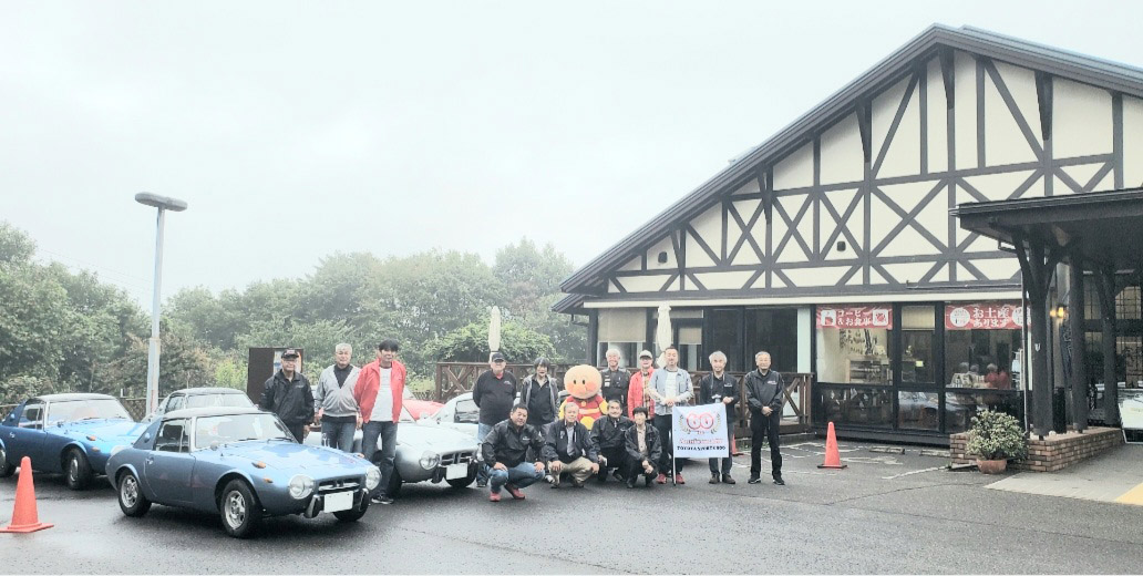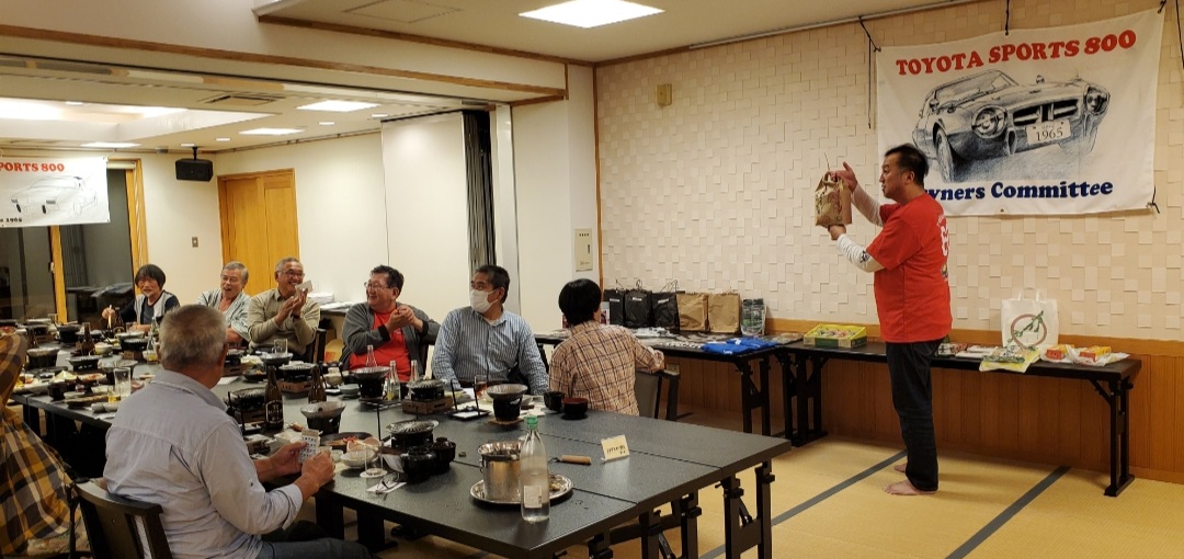 室外に出て、クルマ展示場をあけていただいた広いスペースで 記念撮影のあと、YOTA8と友情参加車の展示とそのオーナーによる 愛車自慢。